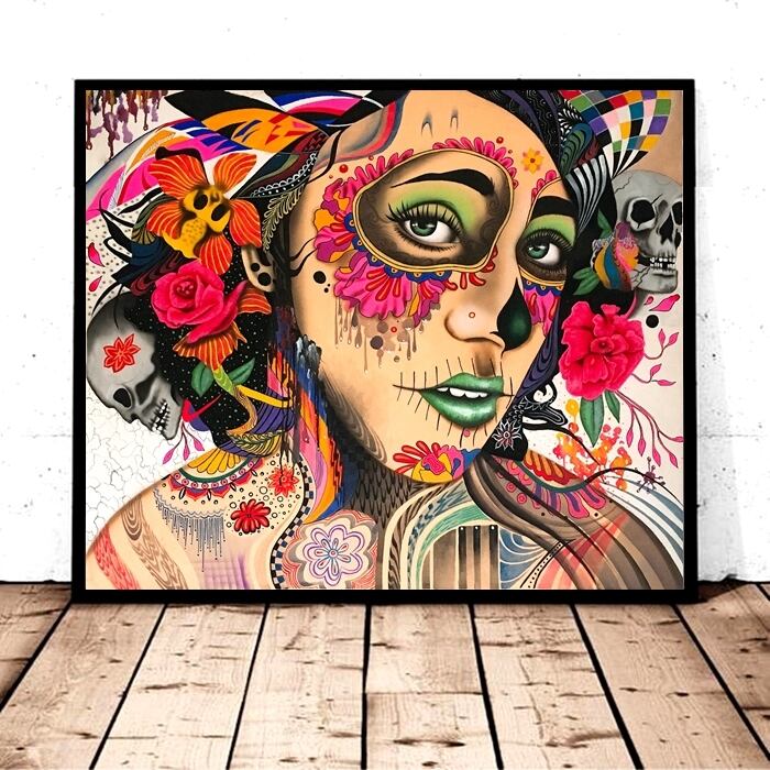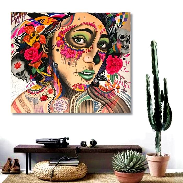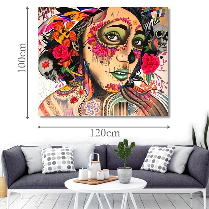 バリ キャンバスアート (メキシカン シュガースカルガール)特大 100×120cm これ1枚でお洒落なお部屋【バリ島直輸入】