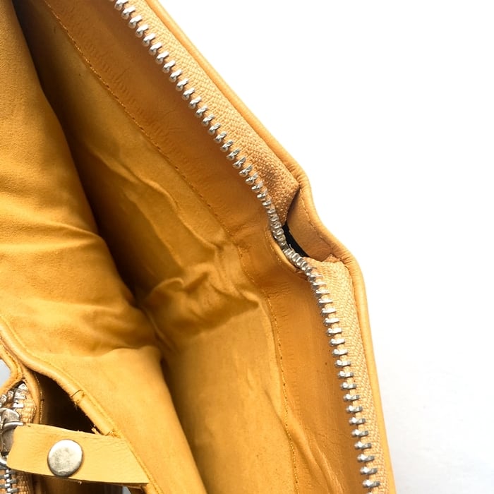 こちらの商品はカジュアルなキャメルカラーのレザーに