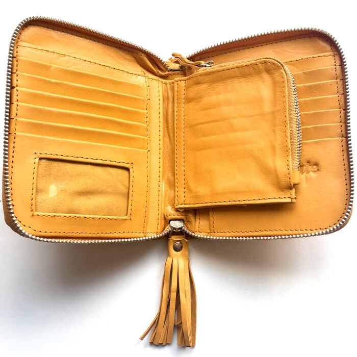 型押しされたマンダラ柄が縫い込まれたアクセントがかわいいお財布。