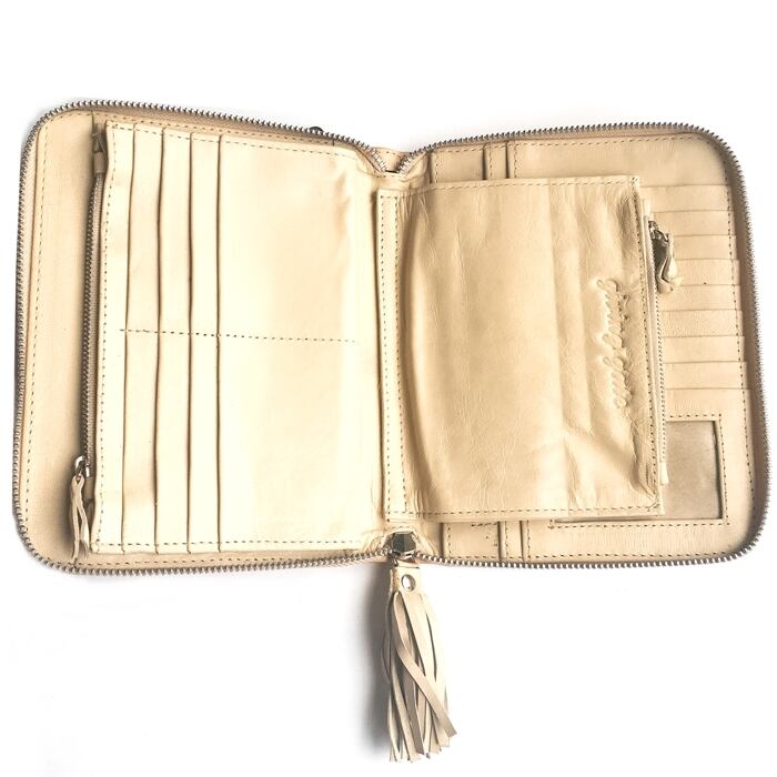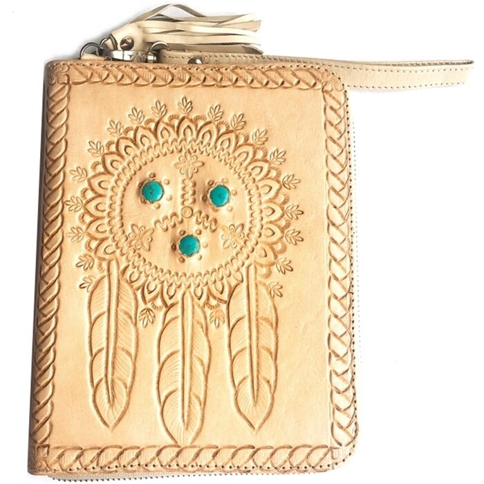 ボヘミアン BIGウォレット(ドリームキャッチャー×アイボリー)本革 財布 手帳ケース パスポート入れ【バリ島直輸入】