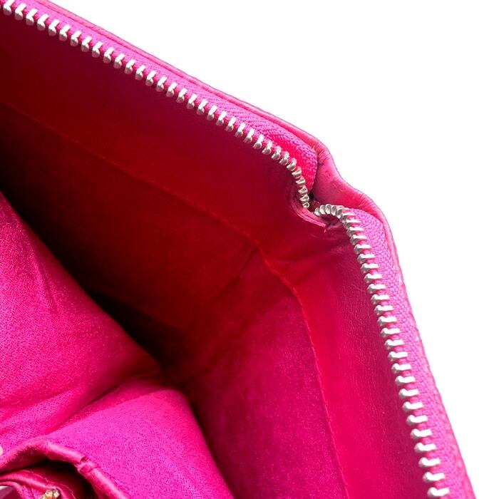 その周りをカラフルなレザーでサークル刺繍が施されたアクセントがかわいいお財布。