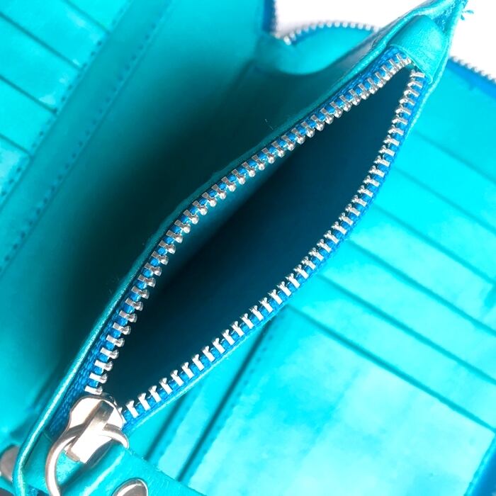中央にターコイズストーンが施されたアクセントがお洒落なお財布。