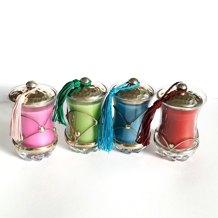 タッセル&シルバー 蓋つきアロマキャンドル(ターコイズ)オーシャンの香り【モロッコ直輸入】