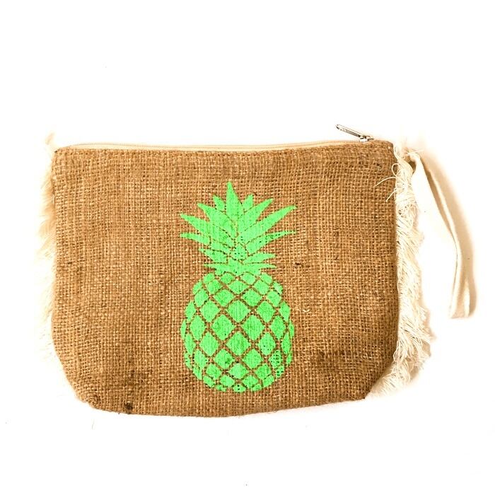 ボヘミアン フリンジ クラッチ(パイナップル/ネオングリーン) ポーチ【バリ直輸入】