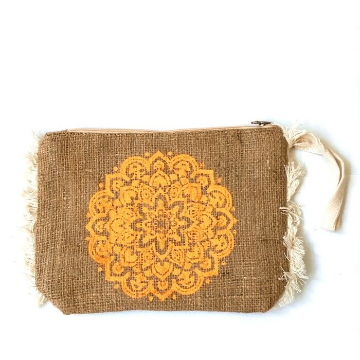ボヘミアン フリンジ クラッチ(マンダラ柄/オレンジ) ポーチ【バリ直輸入】