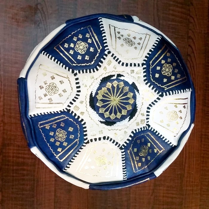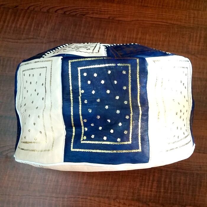 モロッコ プフ 山羊 本革レザー スツール(ネイビー)オットマン POUF【モロッコ直輸入】