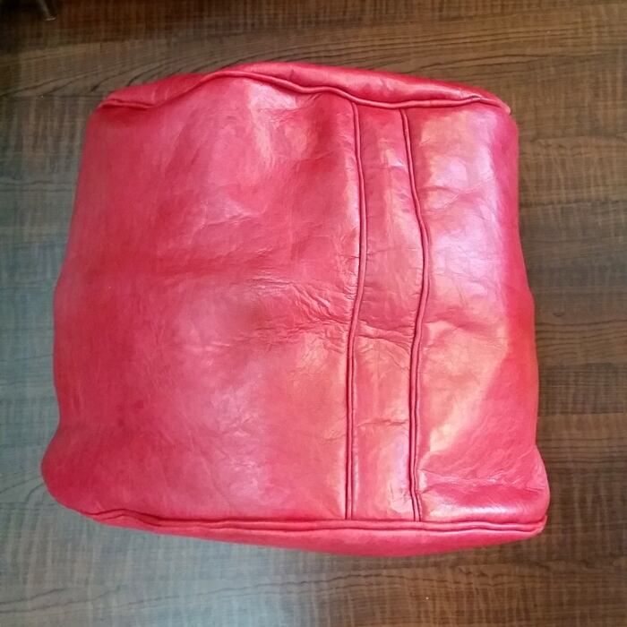 モロッコ プフ 山羊 本革 デザインレザー スツール(赤)オットマン POUF【モロッコ直輸入】