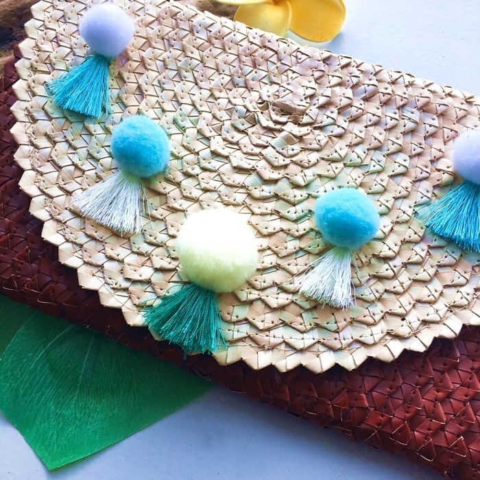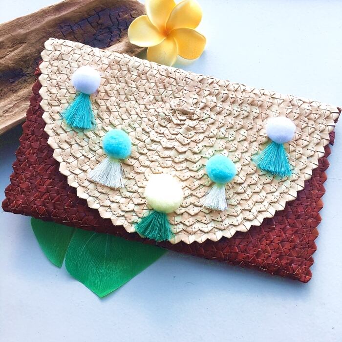 カゴ クラッチバッグ(ブラウン×ポンポンタッセル) パーティバッグ カゴバッグ【バリ直輸入】