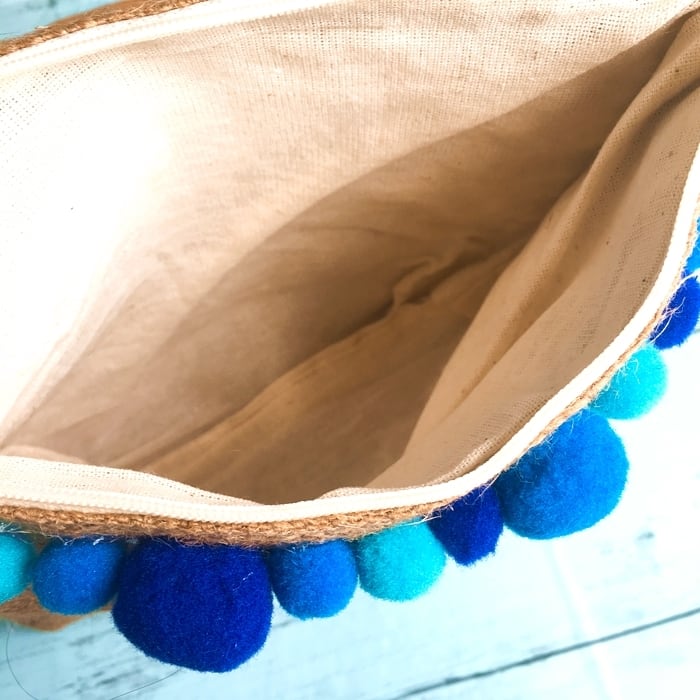カラフルな配色のポンポンやタッセルで可愛いバッグに仕上げました。
