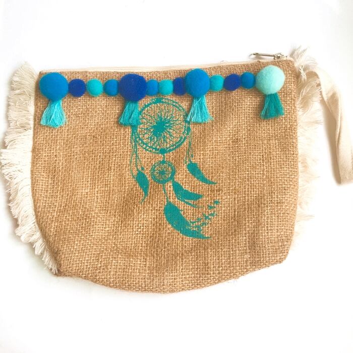 麻素材ベースにカラフルなドリームキャッチャー柄が施されて両サイドにはフリンジが付いていてめちゃくちゃ可愛いです。