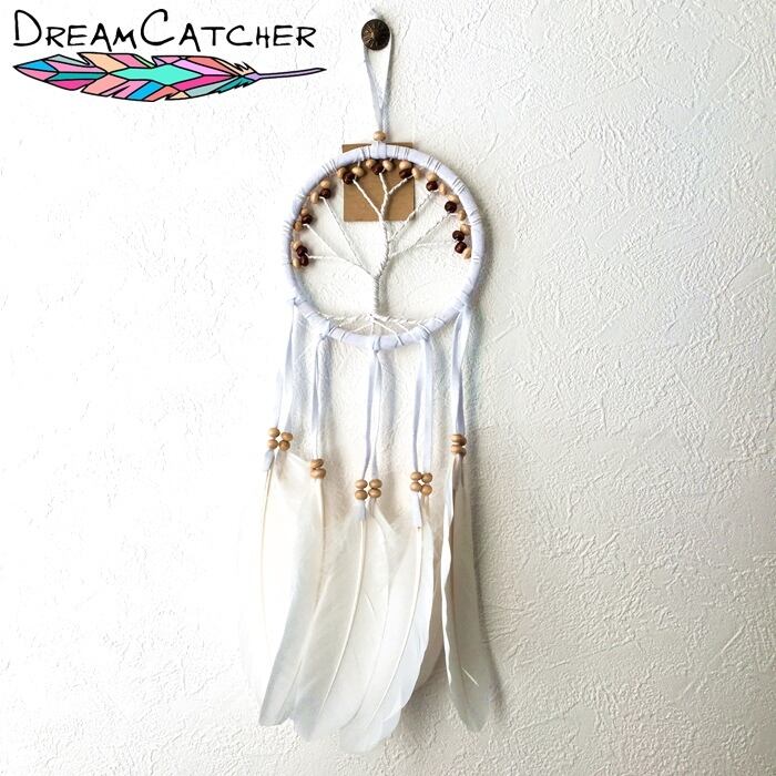 【バリ島直輸入】ネイティブ ツリー柄ドリームキャッチャー(ホワイト)フェザー