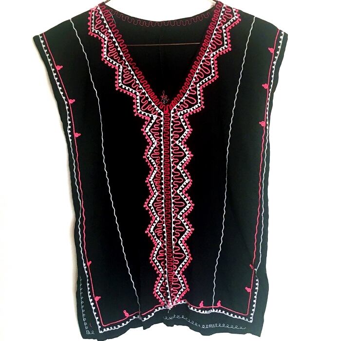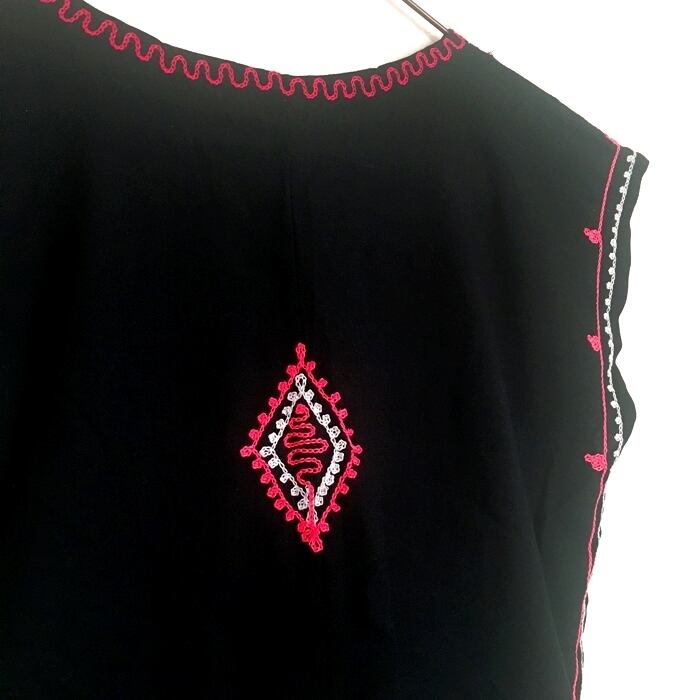 エスニック刺繍 チュニック ワンピース (黒)110~120cm【バリ直輸入】