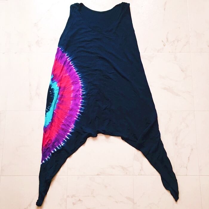 リゾート風 タイダイ アシンメトリー ワンピース(ネイビー)【バリ島直輸入】