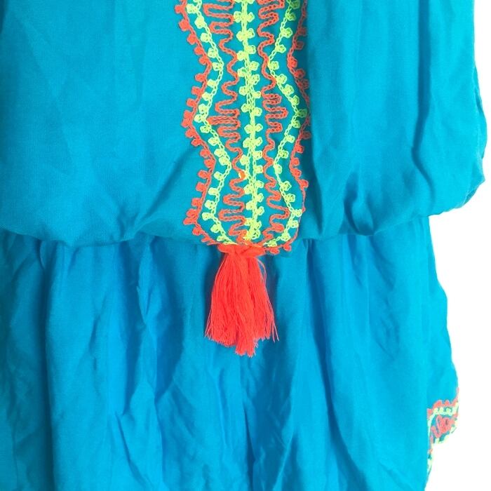 ベアトップ リゾート風 ロンパース(水色)刺繍×タッセル【バリ島直輸入】