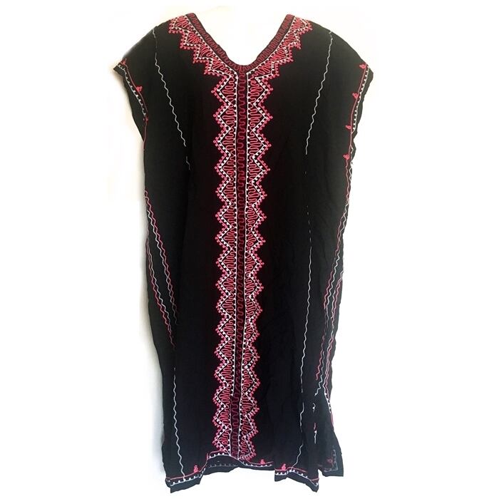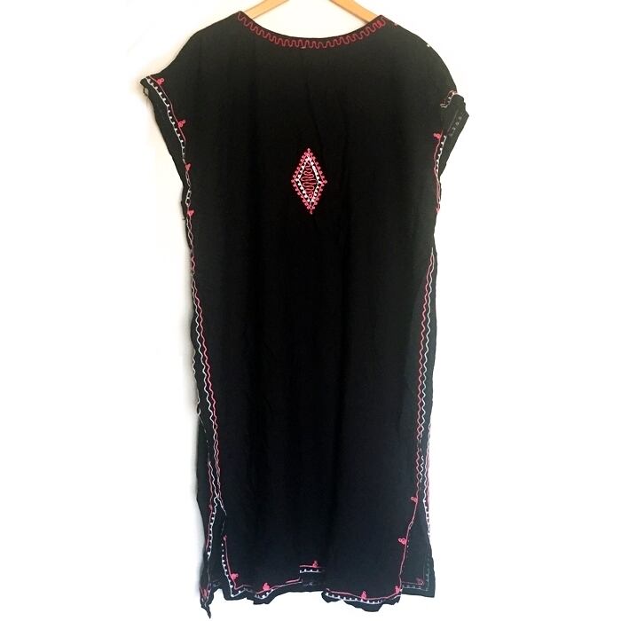 エスニック刺繍 チュニック ワンピース (黒×ピンク×白)【バリ島直輸入】