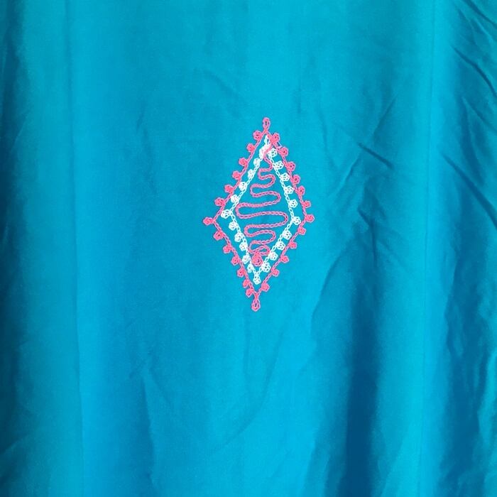 エスニック刺繍 チュニック ワンピース (ブルー)【バリ島直輸入】