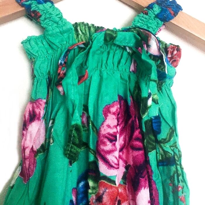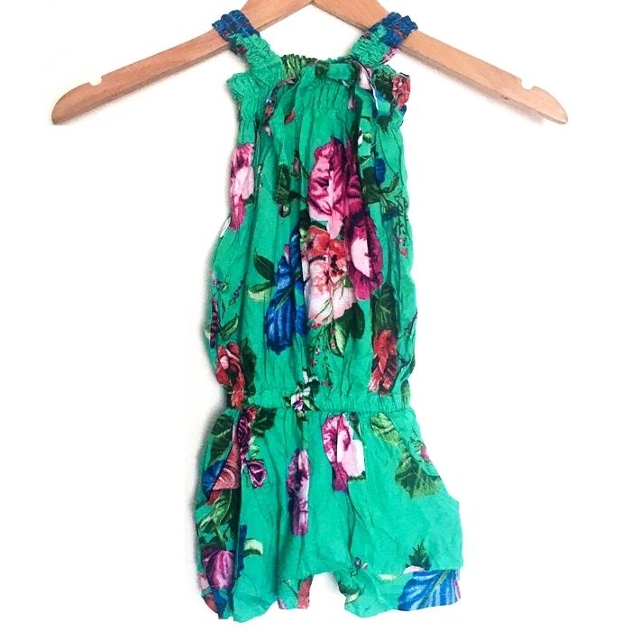 フラワー柄 リゾートロンパース(グリーン)90~100cm【バリ島直輸入】