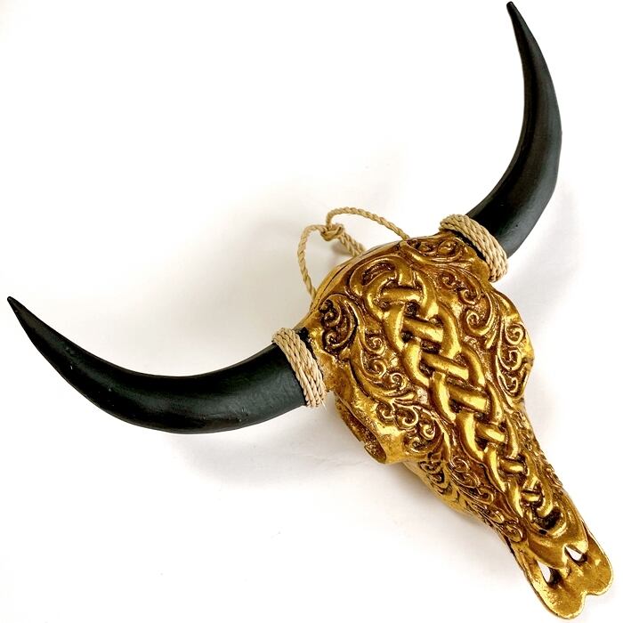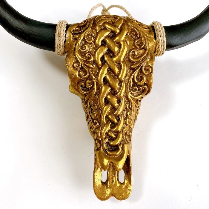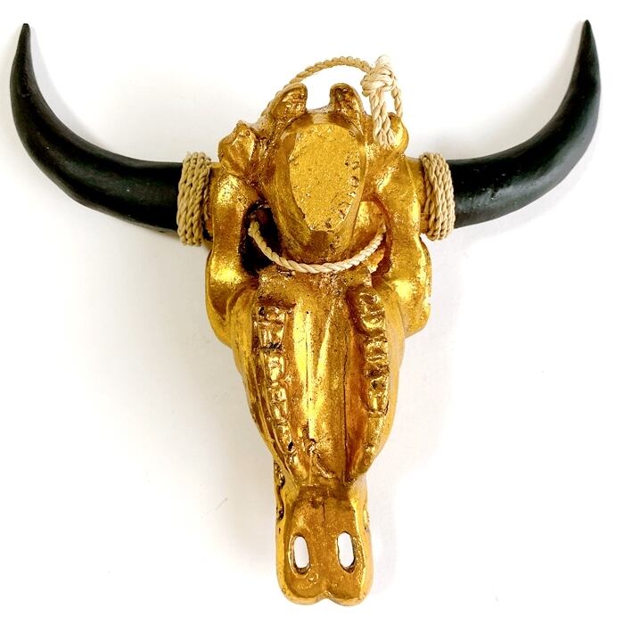 ネイティブアメリカン カウスカル オブジェ牛 骸骨 オブジェ(ゴールド×編込み)【バリ直輸入】