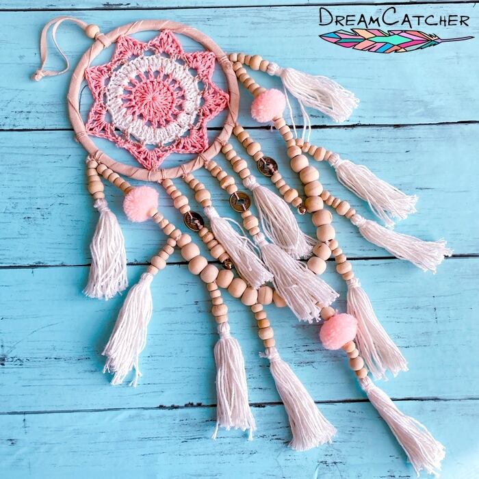 こちらはクロッシェやポンポンやコインが可愛いドリームキャッチャー♪