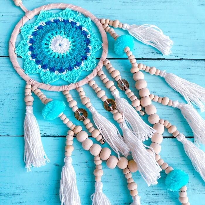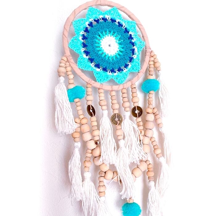 こちらはクロッシェやポンポンやコインが可愛いドリームキャッチャー♪