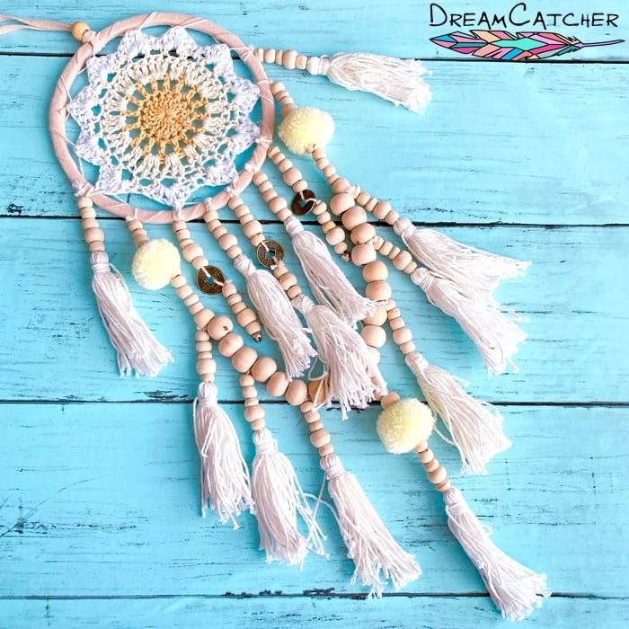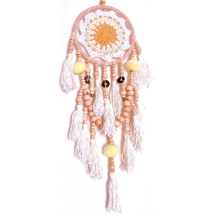 こちらはクロッシェやポンポンやコインが可愛いドリームキャッチャー♪