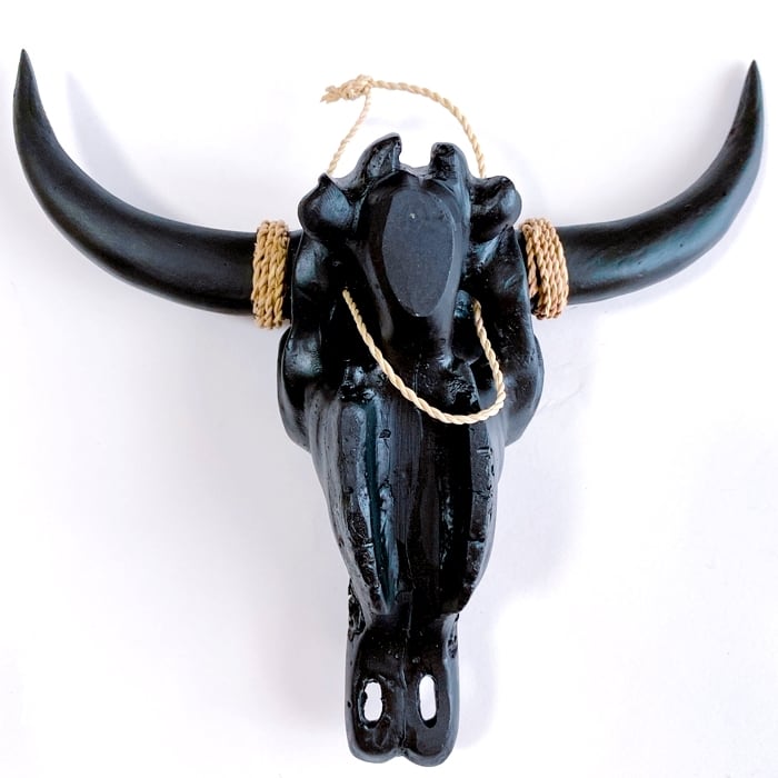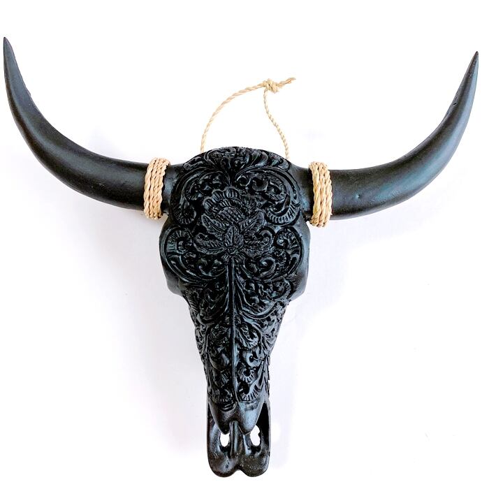 ネイティブアメリカン カウスカル オブジェ牛 骸骨 オブジェ(黒×フラワー柄)【バリ直輸入】
