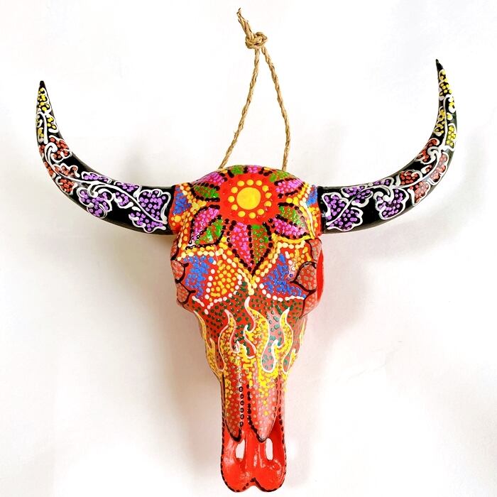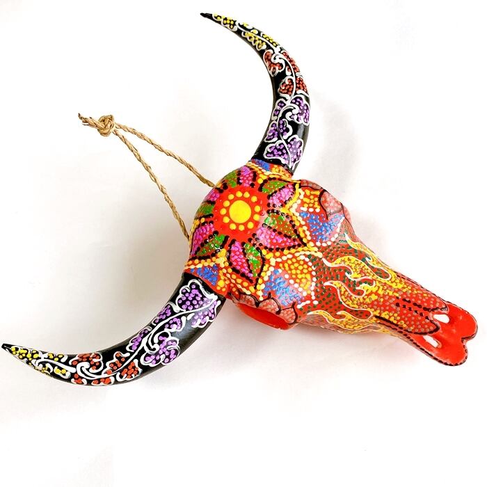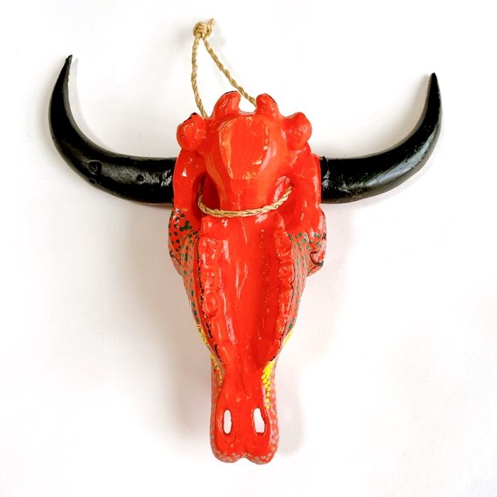 ネイティブアメリカン ペイント カウスカル オブジェ牛 骸骨 オブジェ(オレンジ)【バリ直輸入】