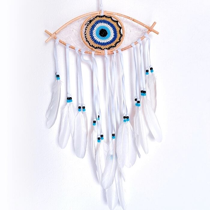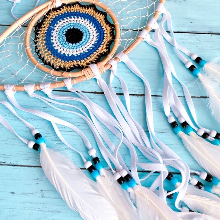 【バリ島直輸入】ネイティブ ボヘミアン eye型 BIGドリームキャッチャー (ブルーベージュの瞳)