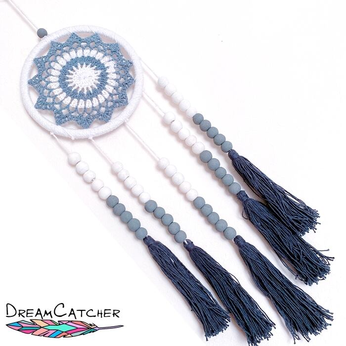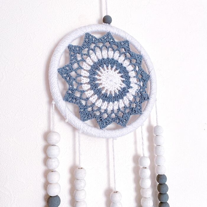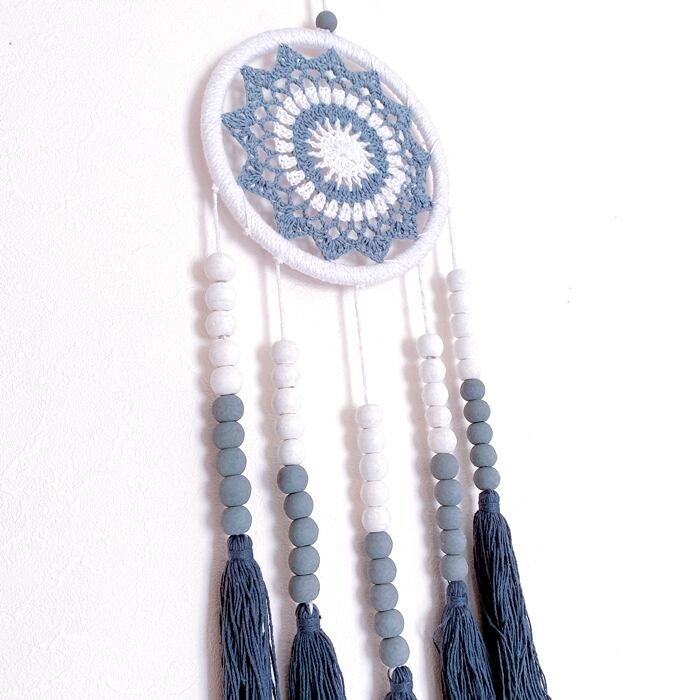 【バリ島直輸入】ボヘミアン ドリームキャッチャー(グレー×クロッシェ)ボリュームタッセル