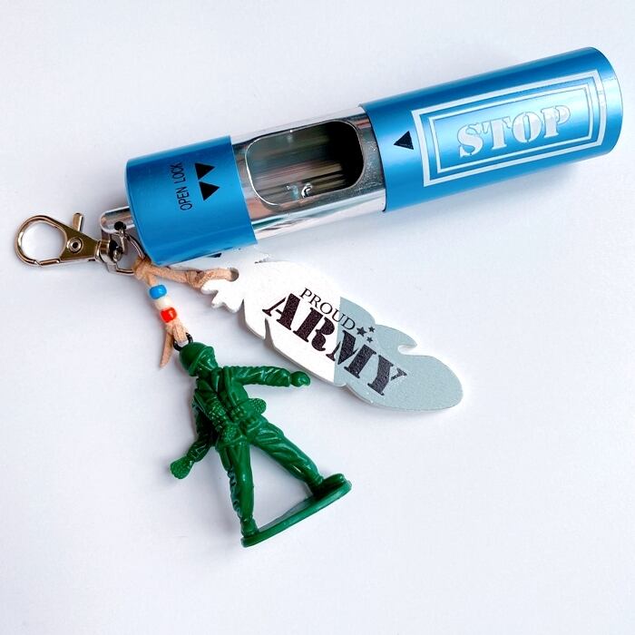 ミリタリー 携帯灰皿キーホルダー ★青★グリーンアーミーメン 兵士 タバコ iQOS