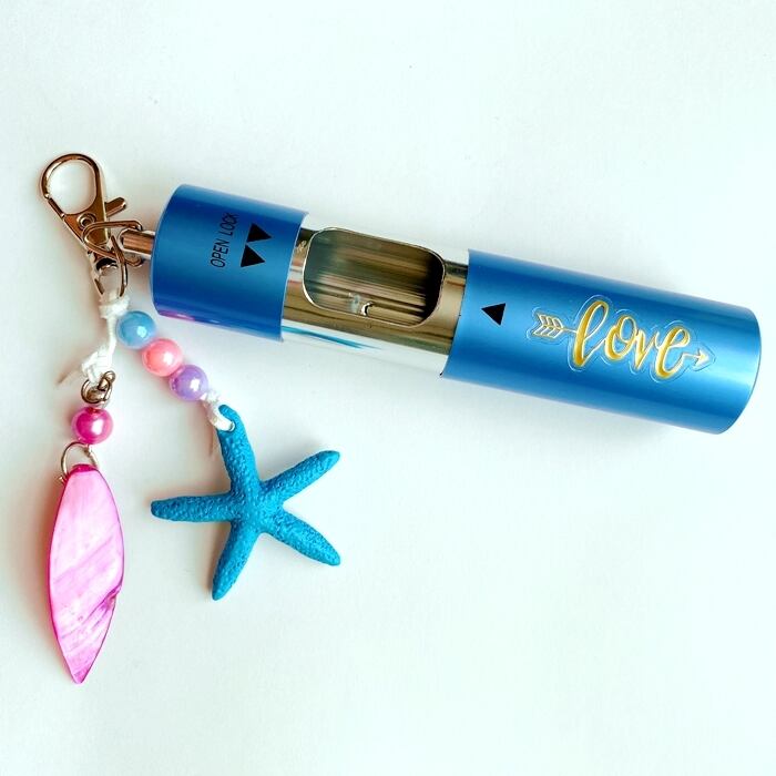 海を感じる サーフな携帯灰皿キーホルダー ★青★ SURF 貝殻サーフボード ヒトデ タバコ iQOS