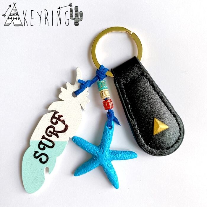 海を感じる マグネットキーホルダー 黒★スターフィッシュ SURF フェザー