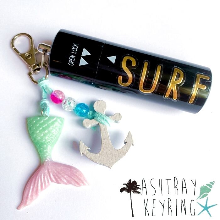 海を感じる サーフな携帯灰皿キーホルダー ★黒★ マーメイド SURF タッセル タバコ iQOS