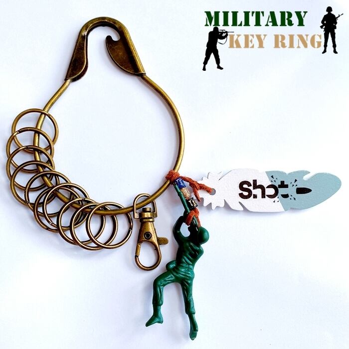 ミリタリー BIG 艶消しアンティーク風10連 キーリング★アーミー兵士 Shot 匍匐前進